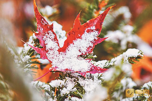 雪打红叶红叶笑,红叶映雪雪妖娆。白雪红叶,福瑞吉祥!