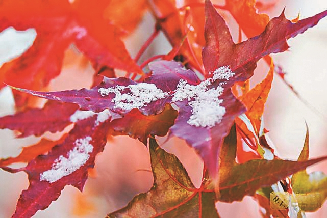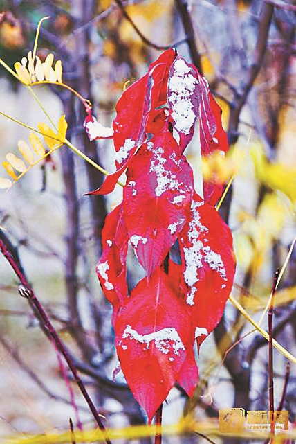 当红叶用心托住白雪,当白雪拥卧在红叶上,满山遍野的红白相间,雪白若云,叶红似火,彼此辉映,怎不让人留恋?