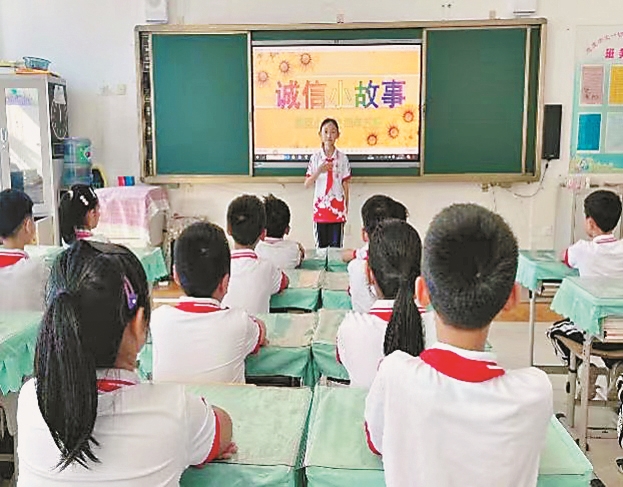 中华国学经典中关于诚信的诗词、文章数不胜数。哈尔滨市育红小学校在早读时间的学校课前十分钟,组织学生诵读“诚信”经典故事。在诚信主题故事德讲授中,引导学生理解诚信,学习诚信,让孩子们在一遍遍的诵读中品味经典、感悟诚信。哈尔滨新区师范附属小学校开展一场诚信故事比赛,同学们做好了十足准备,站上讲台自信大方地讲好故事,故事娓娓道来,诚信教育的内涵深植于心。