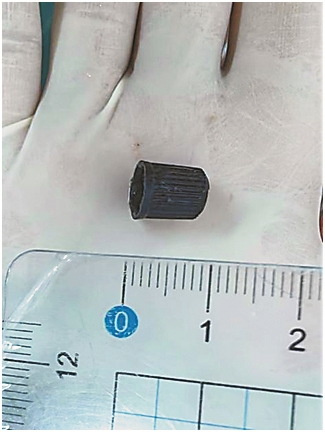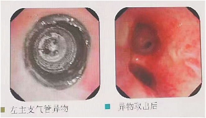 当天13时,在麻醉师及器械护士的全力配合下,李世敏副主任医师行电子支气管镜检查,发现一个边缘光整圆形的黑色异物嵌顿在左主支气管,左主支气管管腔完全堵塞。经过一个小时的努力,医生顺利将异物取出。术后,患者各项指标均正常,安全返回病房。