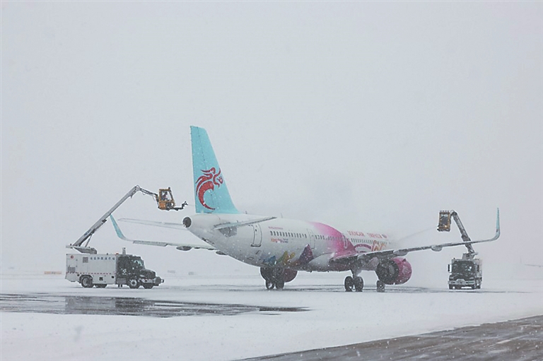 受降雪天气影响,7时10分,哈尔滨机场启动大面积航班延误蓝色预警。哈尔滨机场地面各服务保障单位加强值班值守,提早安排人员备勤,全力做好不正常航班服务保障工作。降雪后,哈尔滨机场以雪为令,立即出动18台主力扫雪车,对跑道、滑行道进行了集中清扫。同时,哈尔滨机场机务保障部人员、设备、车辆迅速到位,开启航空器除防冰工作,确保飞机安全起飞。