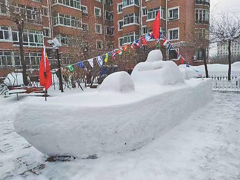 “我的天,这也太强了,雪雕的军舰和坦克呀!”在香坊区三合路上的乐强小区,也不知道哪位“雪雕大师”在小区内用雪雕塑了这样特别的景观。