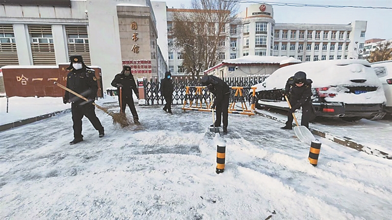 生活报讯 (记者史天一) 22日,哈尔滨市迎来了新一轮降雪天气。为了保障师生们的出行安全,确保教学秩序正常开展,哈尔滨市香坊区综合行政执法局派出多支执法队伍,深入到辖区内多所学校,协助开展校园清雪工作。