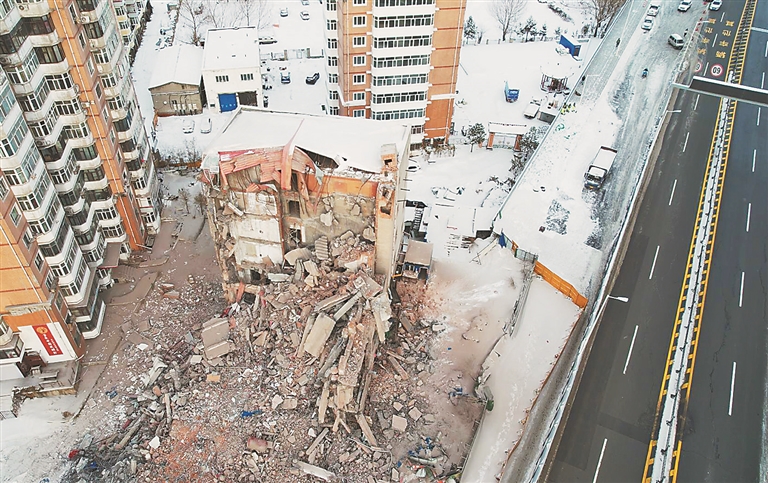 连日来,经道外区委区政府统一部署,道外综合行政执法局启动该处违法建筑拆除工作。由于违法建筑体量巨大,内部结构错综复杂,耳房、地下室、棚厦等总面积7390.96平方米。而且建筑紧邻引桥,施工作业面狭窄,拆除难度极高。“这里作业面狭小,内部结构复杂,6层的大体量建筑,旁边还有很多棚厦,拆除难度较大。我们联系交警部门对道外南二十道街引桥进行交通管制。抽调全局执法力量组成5个拆违工作组24小时不间断作业,全力保障拆除工作安全、快速进行。目前,先从棚厦开始拆起,争取在36小时内完成主体拆违任务。”道外执法局工作人员说。
