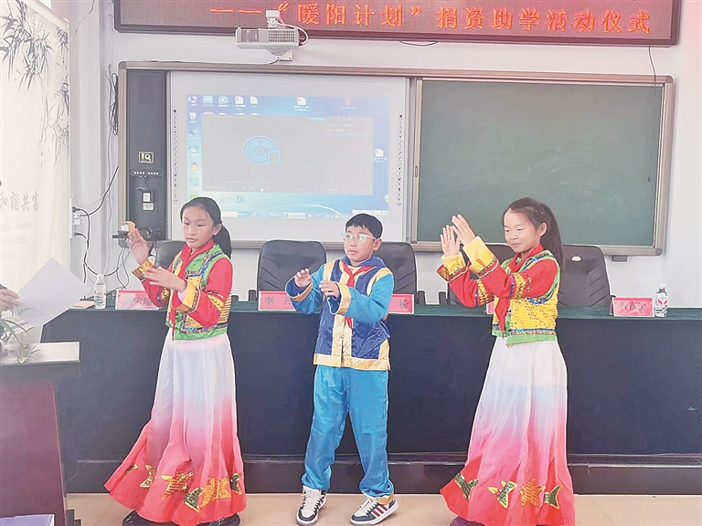 欢快的歌声、大方的舞步,助学金发放完毕后,学生们身穿民族特色服饰载歌载舞,为爱心小队献上了精心准备的歌舞表演。“感恩的心、感谢有你……”学生们通过歌声表达了自己的谢意。看着因受助而感动的孩子们,国控星鲨黑龙江地区副总经理李萍表示,在做好经营的同时,国药星鲨不忘承担社会责任,践行社会公益,积极参与各种公益活动,“希望孩子们能够更加努力学习,药品能慰问一线辛勤的教师们,做公益、践行慈善,国药控股星鲨制药一直在路上。”