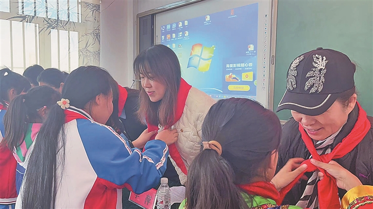 据悉,本次活动是今年暖阳计划的第十一场活动,此次活动有20名学生受助。“我们学校是一所少数民族学校,此次受助的20名学生从小学到初中生都有,他们大多是品学兼优家庭困难的学生。”活动现场农丰满族锡伯族镇学校的满校长向爱心小队表达了学校的感谢,并由学生代表为爱心小队的队员献上了红领巾。