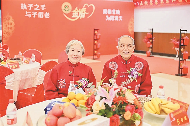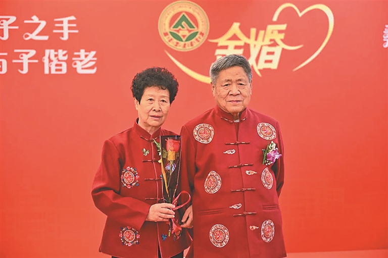 孟冬时节,东北林大教工餐厅内却充满了暖意。28对金婚夫妇和64位长寿老人,以及参加过往届金婚庆典的部分夫妻,在家人和工作人员的搀扶下到达典礼现场,共享温馨时刻。活动现场还播放了金婚夫妇的暖心视频。“五十多年来,相濡以沫,一直走到今天,收获颇多。”“感谢东北林大让我们相遇,我们一家子都在这里,我们也时常教育孩子,要为学校增光添彩。”