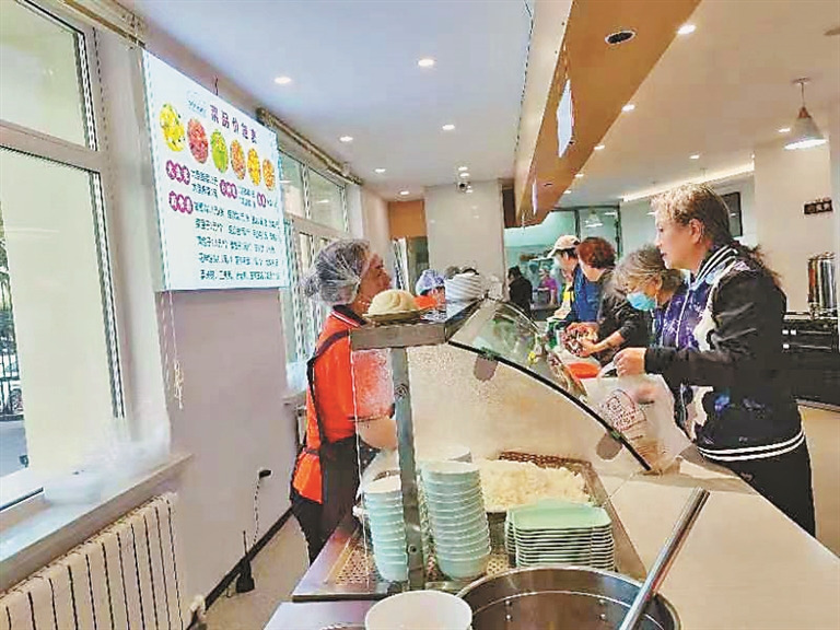 70岁的居民张大爷走路几分钟来到家园膳食坊内吃起了午餐。记者走进位于群力家园K区的家园膳食坊看到,上百米的餐厅内整洁宽敞明亮,所有餐品都是明档。花卷、馒头、包子、米饭、粥、溜肉段、鱼香肉丝、松仁玉米……各种主食菜品达到20余种,此时接近中午,前来就餐的业主和周边市民络绎不绝。