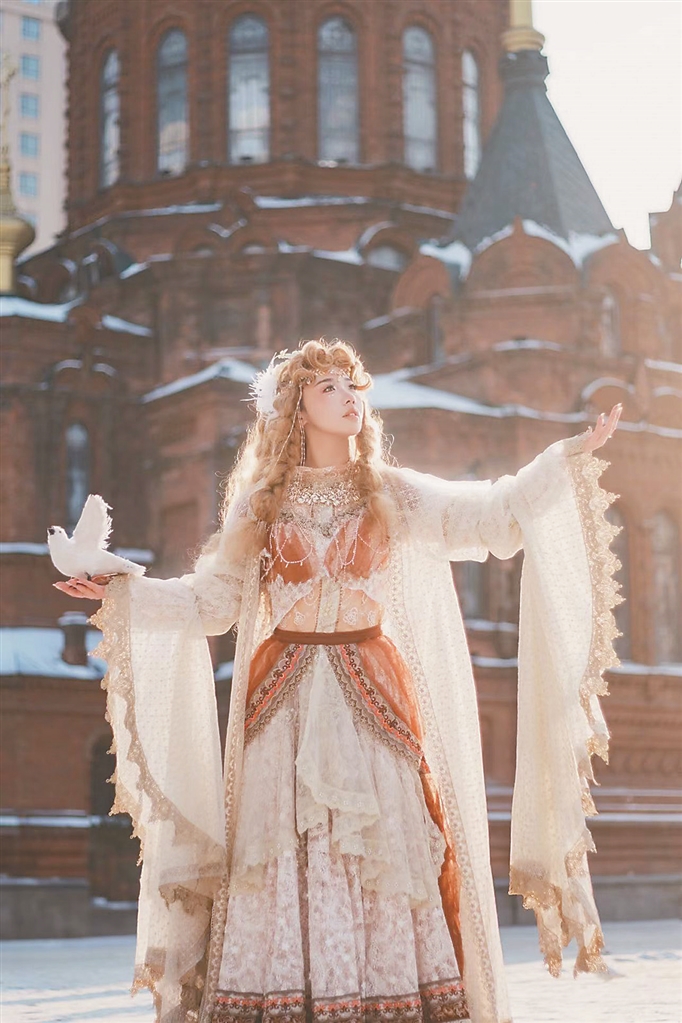 “三步一公主,五步一女王”。5日,记者来到索菲亚广场看到,这里可谓是热闹非凡。众多身着特色服饰的年轻人,打扮成唯美公主、霸气女王、帅气骑士等造型,在专业摄影师的指导下与索菲亚教堂合影。