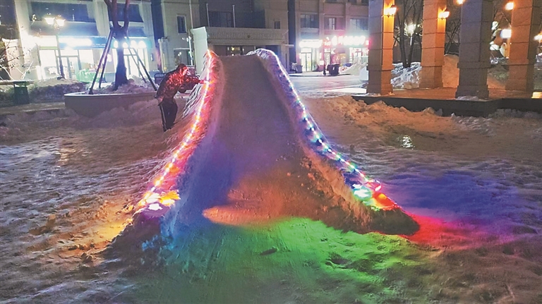 在恒大丁香郡小区,金碧物业工作人员搭建了雪滑梯,还安上了彩色灯带,一方面给孩子提供照明,另一方面增添时尚元素。“真是太惊喜了。”业主张女士高兴地说。