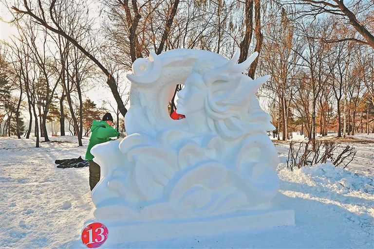 生活报讯 (记者王伟健) 14日,记者从哈尔滨太阳岛风景区获悉,经过4天的激烈角逐,第九届黑龙江省大学生雪雕比赛于当日在太阳岛雪博会落下帷幕,20件风格各异、创意独特的优秀雪雕作品闪亮太阳岛雪博会。