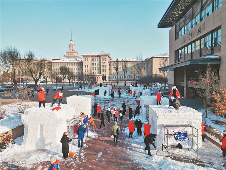 生活报讯 (记者吕晓艳) 20-22日,第四届哈工大国际雪构建造节火热开展,开幕式在该校图书馆前广场举行。来自清华大学、中央美术学院、新西伯利亚国立建筑大学等国内外13所高校的同学们用妙手巧思,创造出独具匠心的艺术建构作品,与校园空间浪漫“邂逅”,创造出一番冰雪交融的梦幻天地,打造冬季校园里一道靓丽的风景线。