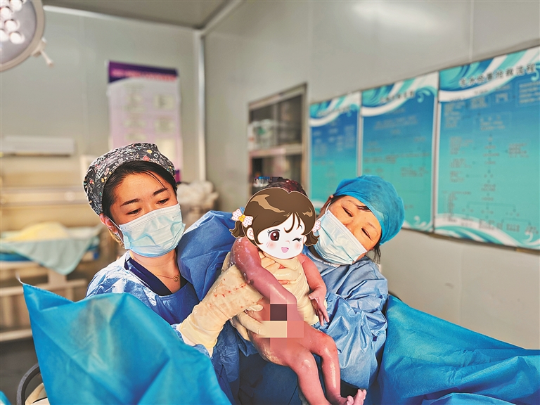 14时06分,又一名女婴降生,体重3250克。“幸好有医生和助产士的鼓励,让我顺产生了宝宝。”宝妈丹丹(化名)说。