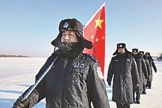 生活报1日讯 (记者栾德谦) 1月1日,驻守在祖国东北边陲的黑河边境管理支队大黑河岛边境派出所的移民管理警察们穿戴好装备,前往小黑河岛岛尖至中俄黑龙江大桥江段进行巡边踏查。