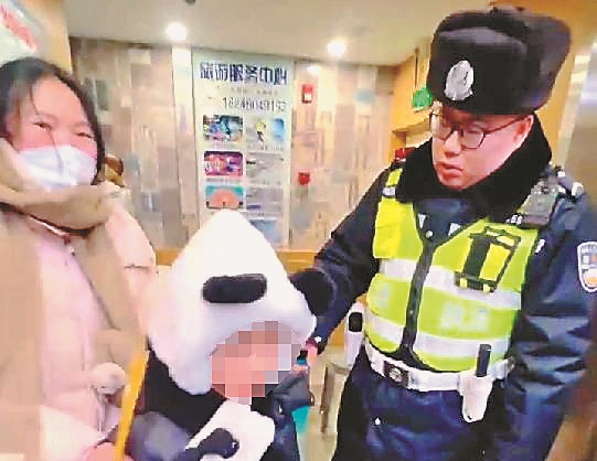当日18时,哈尔滨市公安局呼兰分局禁毒大队执勤民警在冰雪大世界出口处,发现一名游客抱着一名男孩艰难前行,迅速上前询问情况。经了解,来自广东的游客刘女士带着8岁的儿子来哈尔滨体验冰雪,但由于保暖衣物准备不充分,孩子又冷又累走不动了,便准备带孩子乘车返回酒店。