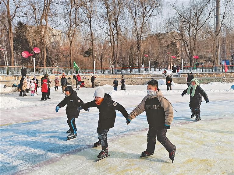 在香坊区黛秀湖公园公益冰场记者看到,前来滑冰的市民很多,一些老人和年幼的孩子纷纷穿上冰刀,到冰场上一试身手。市民张先生告诉记者,他今年72岁了,是土生土长的哈尔滨人,速滑是他非常喜爱的一项体育运动,每年冬天,他几乎天天都来滑冰,滑冰不但强健了体魄,还结交了很多有相同爱好的“滑友”。