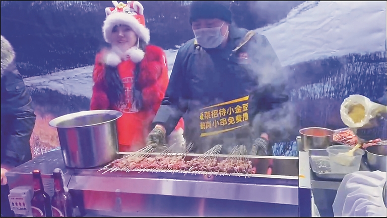 鹤岗小串现场烤 免费让游客品尝