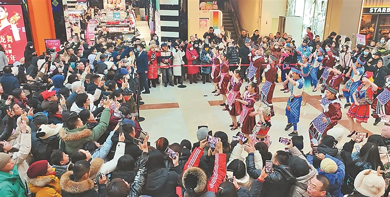 在师大附小发放点,南宁市文化广电和旅游局携南宁市艺术剧院的演员们,与500余名师大附小学生、哈市少年宫小雪花艺术团师生欢聚一堂,双方载歌载舞,还精心准备了礼物互赠环节,场面热烈。最后,在南宁市艺术剧院歌舞演员们的领舞下,数百名师大附小学生在操场上表演了火爆的“科目三”舞蹈。