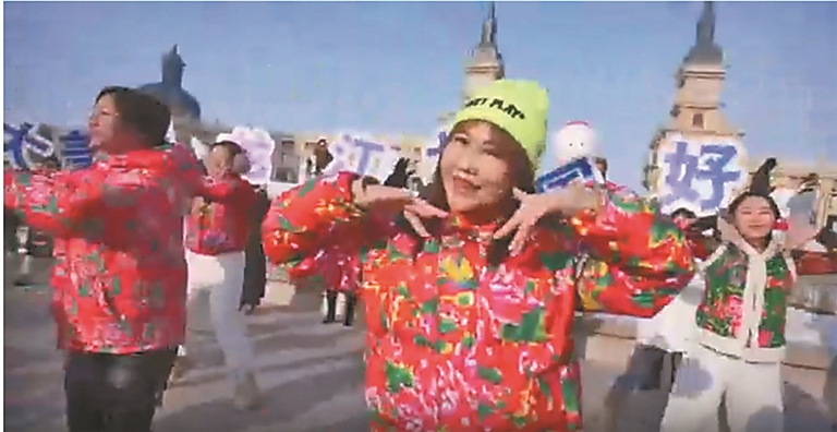 生活报讯 (记者黄迎峰 文/摄) 6日,哈市道里区网红大雪人前,热心市民们身着东北大花袄,舞起网红热舞,展示东北人的热情,游客纷纷加入一起扭起了东北秧歌。
