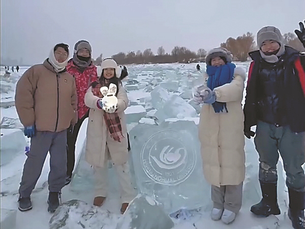 哈师大学子以自己的方式为家乡建设增光添彩,而这一过程中学生也真正做到了“走出课堂,立足实践”,造型别样的冰雕也展现出师大“技艺”。