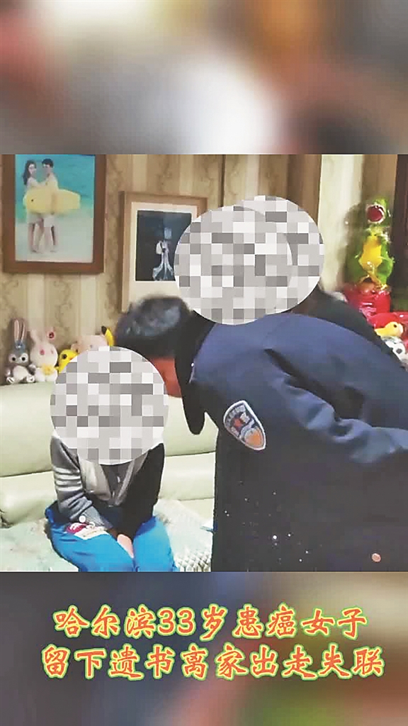据南岗警方介绍,此前失联的33岁患病女子,是留下遗书离家出走的。该女子失联期间,南岗警方成立工作组,在线索一度中断的情况下,继续扩大搜索范围。