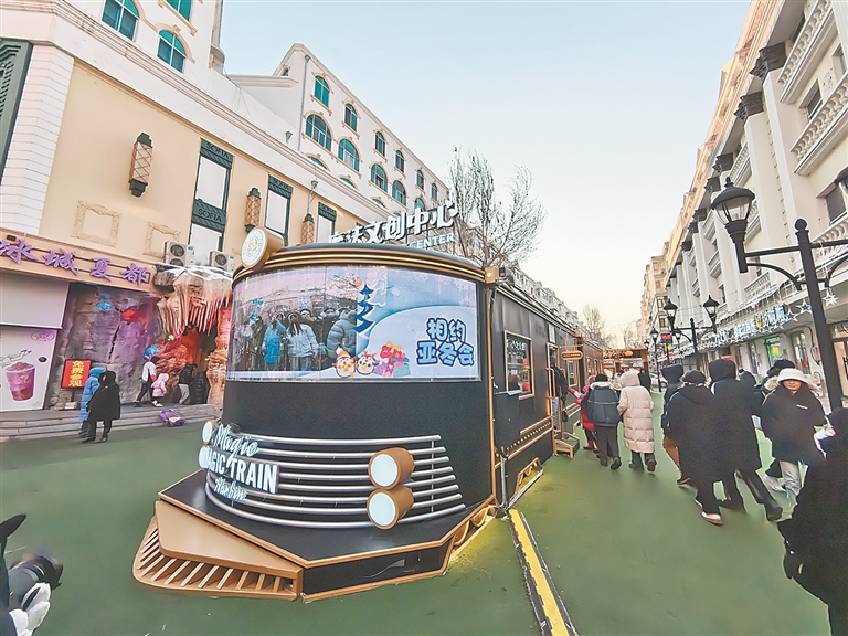 生活报讯 (记者黄迎峰 文/摄) 冰城四季AR冰箱贴、非遗白瓷丁香花、国内新锐插画师创作的冰雪系列主题丝巾、与故宫文创纸制品团队联合开发的哈尔滨印象系列六角纸雕灯……琳琅满目、丰富多元的文创产品,已成为今年冰雪季中央大街上的一抹亮色。开幕不到5天时间,“龙粤号北境魔法列车”部分文创产品就一售而空,特别是冰城四季AR冰箱贴更是爆火网络,市民游客纷纷抢购,首批万套冰箱贴售罄后,预购量已超10万+!“一贴难求”背后折射的正是道里区谋划布局创意设计产业,推进产业招商,加快培育经济社会发展新动能的丰硕成果。