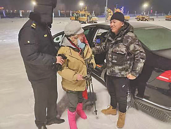 前不久,执法队员在巡查时发现,一位老人在雪地中徘徊。执法人员看到后,主动上前了解情况得知,老人已82岁为香港游客,与家人走散。执法队长马超耐心询问并安抚其情绪,将老人搀扶到执法车中取暖,帮助联系家人,还为老人提供热水和食物。当他的家人赶到时,看到老人安然无恙,激动不已,不停地对执法人员表示感谢。