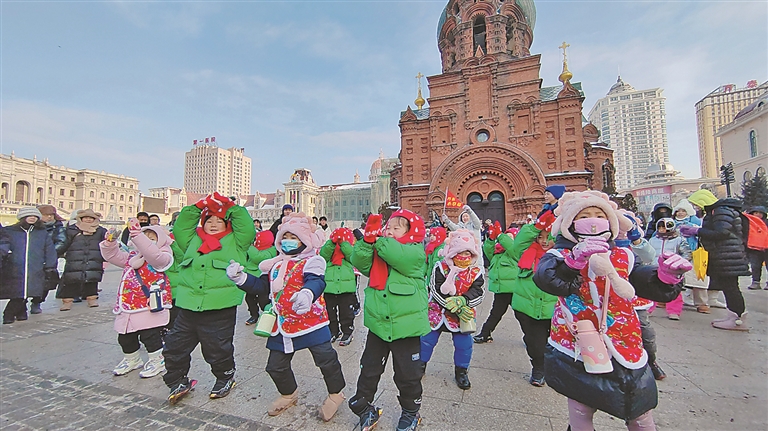 12日,在索菲亚广场,记者见到了这群可爱的小朋友。经过两天的相处,孩子们俨然已经成为了好朋友,看着孩子们开心的笑脸,两位园长也跟着开心地笑。“这次来哈尔滨,多亏了解园长的帮助,为我们提供食宿,还一直帮我们照顾孩子。为了整个行程更加完美、更适合幼儿,她提出很多建议,及时帮我们调整。”谈起此次的哈尔滨研学之旅,于园长难掩感激之情:“我们从下火车开始,就感受到了哈尔滨人的热情。孩子们全程游玩都很开心,研学之旅十分精彩。”