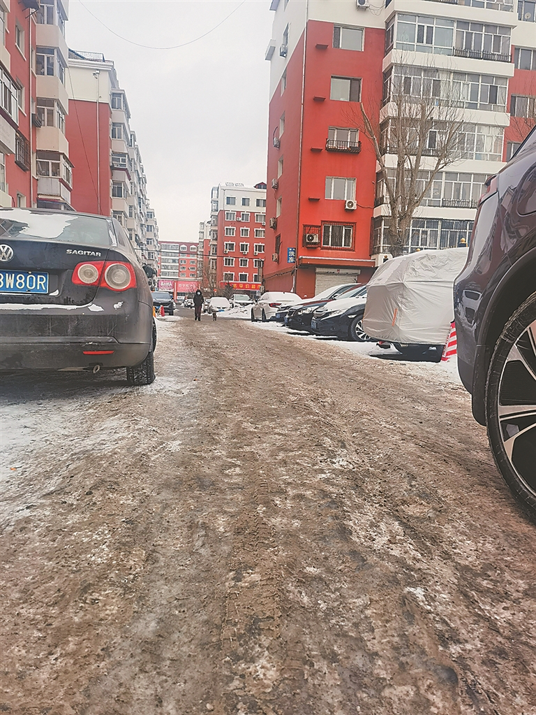 生活报讯 (帮办记者仲亮 文/摄)“小区院里的雪该清清了,路太难走了。”日前,哈市道外区黎华小区、永平小区多位业主向生活报反映,小区清雪不及时,导致部分路面已经结冰,给业主出行带来很大不便。接到业主们反映的新闻线索,12日,帮办记者来到现场进行采访。