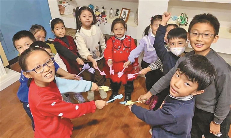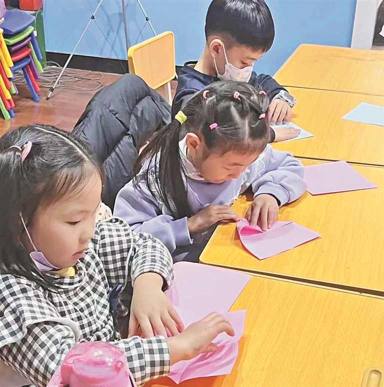 在接下来的实践环节,同学们在老师的带领下,开始了手工互动,用一张张彩色的卡纸巧手制作出一把把小斧子,为本次课程画上一个圆满的句号。