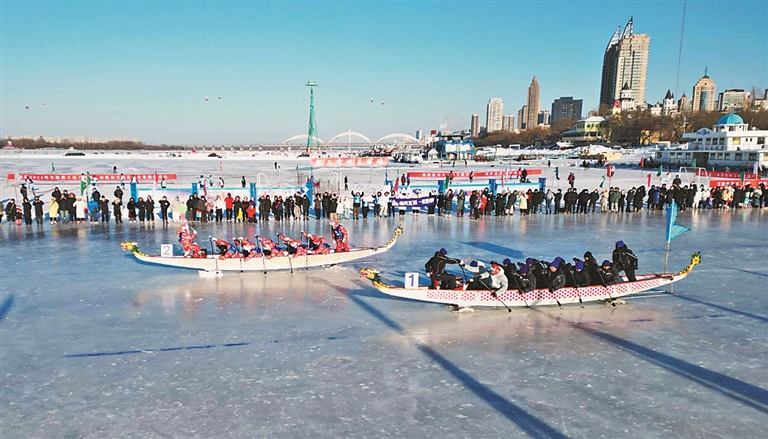1月14日,哈尔滨电机厂职工龙舟队,广东顺德罗浮宫职工龙舟队冰上龙舟表演赛在哈尔滨职工冰雪乐园开赛。顺德乐从罗浮宫职工龙舟队曾取得中国男子龙舟队参加亚洲运动会历史最好成绩和金牌零的突破,在多次世界龙舟锦标赛、亚洲龙舟锦标赛等赛事中获得金牌。哈尔滨电机厂职工龙舟队多次参加全国省市地区的龙舟比赛,获得了2016年、2019年哈尔滨端午龙舟赛冠军和冬季冰上龙舟赛三连冠,在2024中国冰上龙舟公开赛获得总成绩亚军的好成绩。