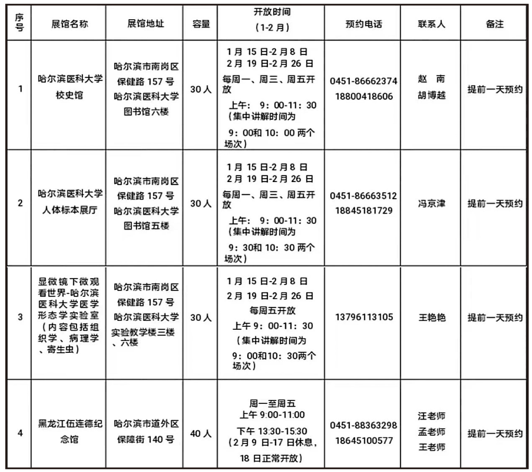 生活报讯 (记者吕晓艳) 15日,记者从哈尔滨医科大学获悉,哈医大寒假期间对外开放。