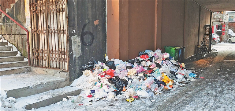 11日,哈尔滨市民通过本报热线反映,建国街268号楼下大门洞附近的宾馆、饭店往此处扔垃圾,因未及时清理,导致垃圾越堆越多,最多时堆出一米多高。因小区暂时没有物业,最近半年,一直都是社区在清理垃圾。垃圾堆积严重影响此处卫生环境,堵在通道口也影响居民正常出行。当日,负责该地区的建国社区工作人员表示,将尽快清理干净。