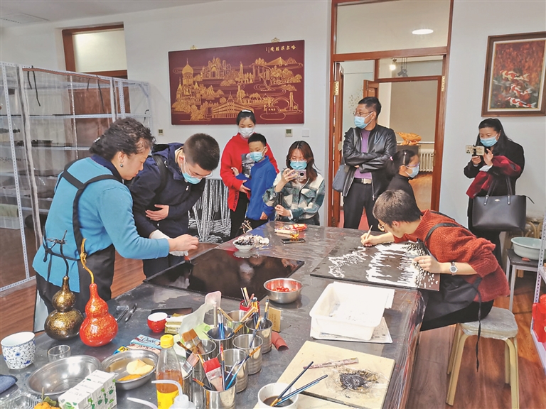 各展馆除了推出各种特色展览外,还通过举办“文艺驻场”“书画笔会”“索斯金艺术沙龙”等文化活动,提升游客参与度。欧洲铜版画收藏馆馆长刘汉英经常为游客讲解铜版画知识,介绍创作经历以及铜版画的艺术特点,与游客互动;哈尔滨音乐博物馆推出了“奇妙的音乐”研学活动;黑龙江版画馆推出了版画小课堂;金漆艺术馆推出了工艺体验课等丰富多彩的体验活动。