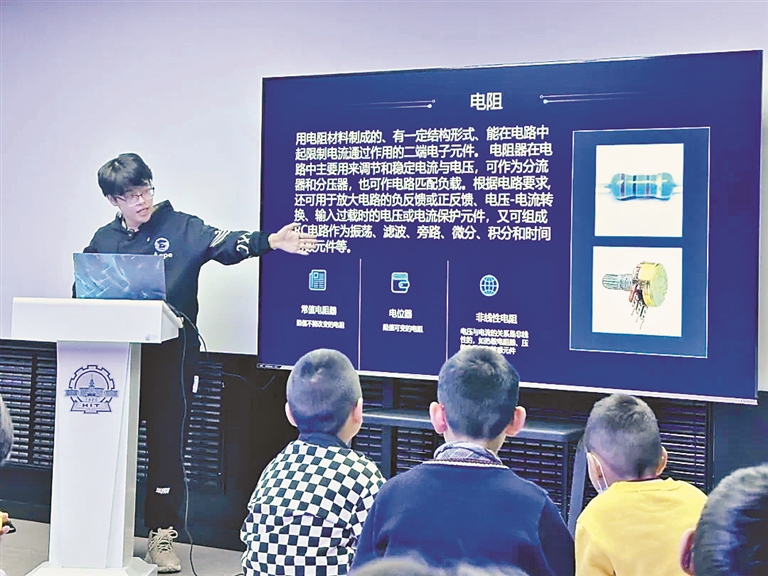 在“哈工大课堂”上,物理学院陈俊荣同学带领青少年,认识这个“有光的世界”;电气工程及自动化学院王瑞琦同学带小朋友们共同感受芯片的魅力;来自哈工大定点帮扶地广西金秀的“瑶哥瑶妹”将国家级非物质文化遗产“黄泥鼓舞”带到哈工大中心,活动现场十分火爆,游客纷纷拍照留念并品尝广西柑橘、喝手工姜糖水。