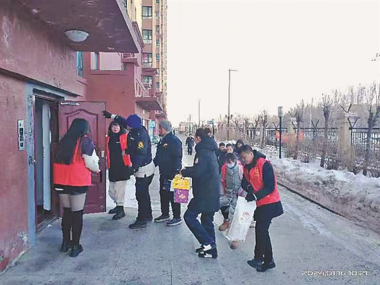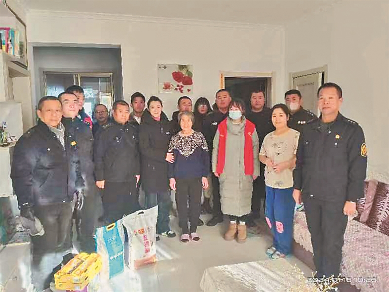 生活报讯 (实习生宋嘉 记者刘维娜)“有事找雷锋车队!”雷锋车队的刘文龙紧紧握着白女士的手,对她细心地嘱咐。1月16日,这温暖的一幕发生在哈市南京路街道龙湾社区白女士家里。白女士的丈夫去世后,她独自带着一位70多岁的老人和两个孩子靠打零工生活。了解到白女士的生活状况后,龙江旅游出租汽车公司雷锋车队八大队为她送去了慰问品及新春祝福。