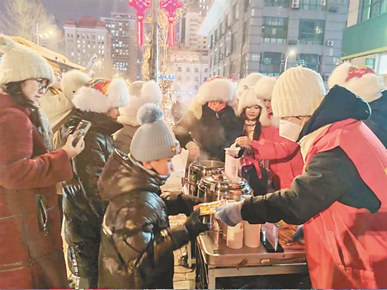 一杯暖暖的热红茶、一碗大碴粥、一片热贴……近日,道里区斯大林街道花圃社区结合毗邻中央大街的地理位置优势,联合辖区企业在尚志大街设立游客服务中心,为广大游客提供问路、购物、美食推荐等服务。
