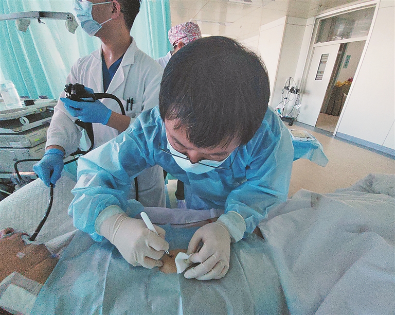 生活报讯 (记者王秋实) 72岁的万大娘(化名)罹患脑梗死多年,长期卧床,生活不能自理,靠家人和保姆照顾起居生活。最近一段时间脑梗加重,同时合并肾功能不全、心功能不全等疾病。脑梗后遗症导致患者不能进食,甚至不会吞咽。随着时间的推移,眼看大娘的身体情况每况愈下,吃饭成了一家人的大难题,这可愁坏了家属。辗转多家医院,最后找到了黑龙江省内能实施内镜下胃造瘘手术的哈医大四院消化内科王立国医生。