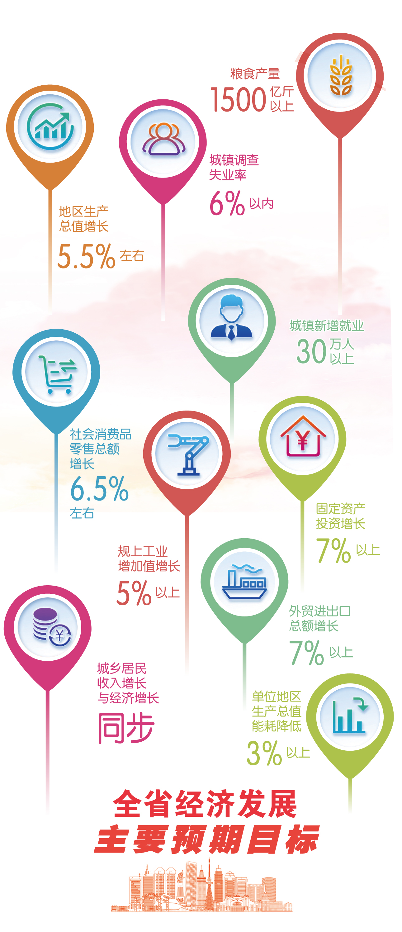 坚持以人民为中心的发展思想,把满足人民日益增长的美好生活需要作为政府工作的出发点和落脚点,扬优势固成效,补短板强弱项,抓改革谋创新,保安全增福祉,聚焦重点领域重点行业重点企业,靶向施策、精准滴灌,以改革创新攻克难点、畅通堵点,有效防范化解风险,让高质量发展成果惠及全省人民。
