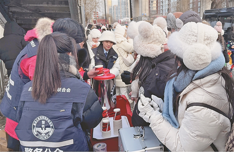 生活报讯 (实习生宋嘉 记者李丹 刘维娜) 记者获悉,近日,黑龙江省志愿服务联合会警务分会的大学生志愿者行动起来,在零下20摄氏度的室外,为在哈尔滨铁路大桥旁活动的外地游客开展志愿服务。普及有关防滑、防寒的安全知识,提供医疗救护、供应热水、发放护具等各项服务,得到外地来哈游客一致好评。