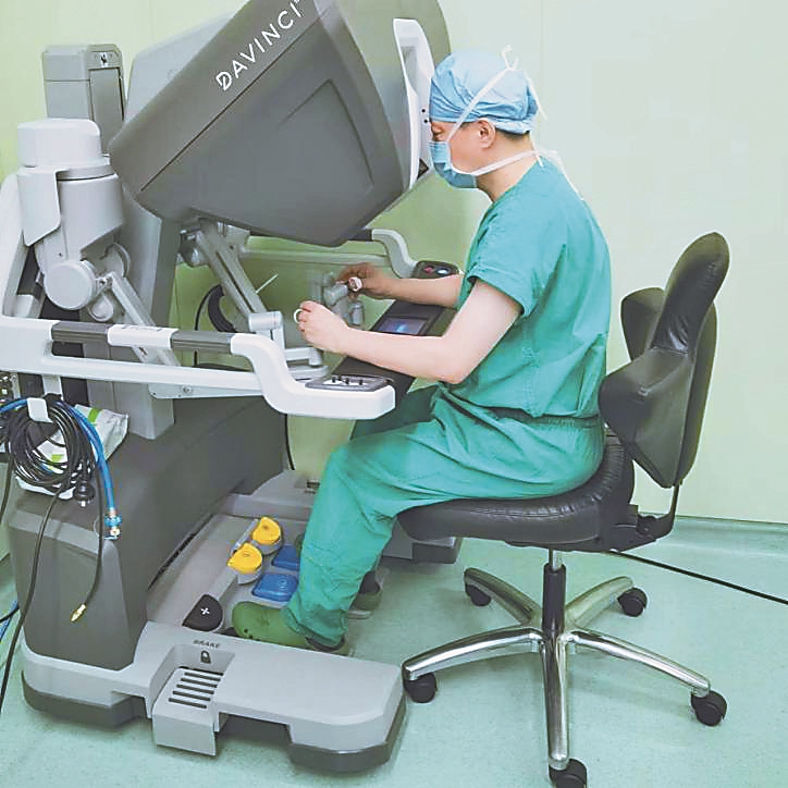 王海平教授操作达芬奇机器人进行手术 图片由哈医大二院提供