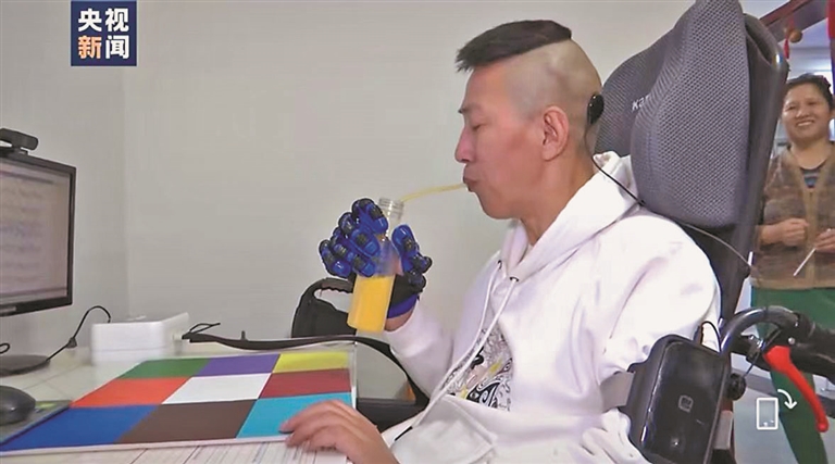 杨先生说:“你在想它(拿水瓶)的同时,就能攥上了。老幸福了,对提高生活质量有很大帮助。”杨先生的妻子也对此十分惊喜,她期待随着科技进步,杨先生可以自主完成更多日常活动。