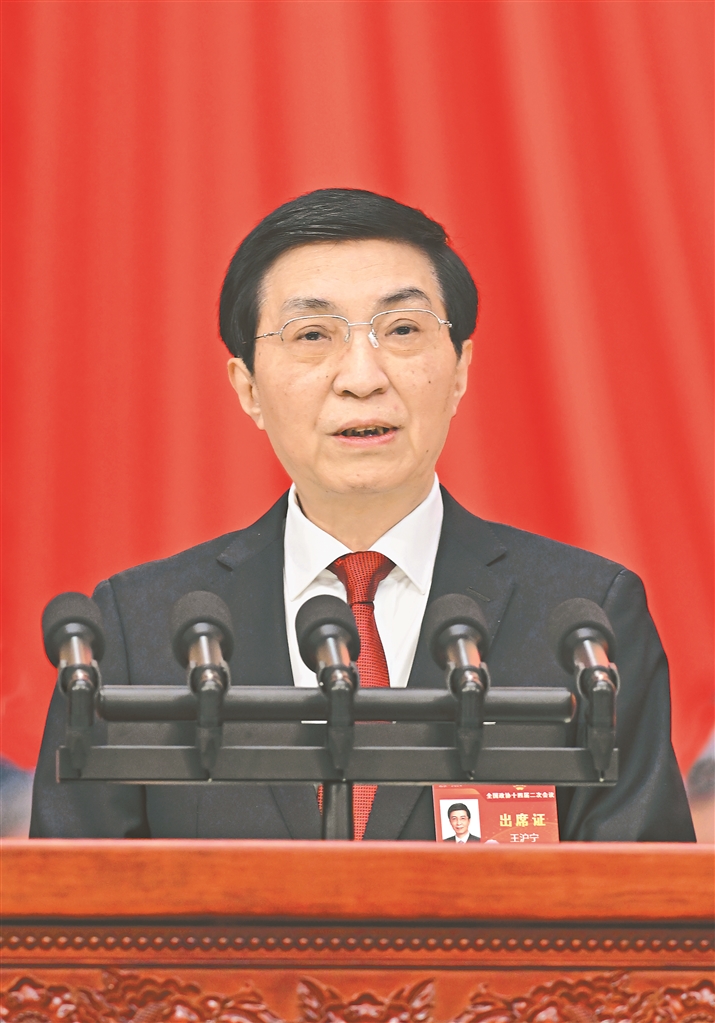 王沪宁代表政协第十四届全国委员会常务委员会,向大会报告工作。