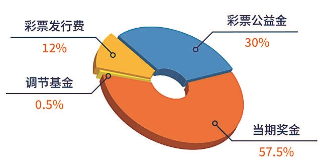 福彩快乐8游戏的彩票资金比例为:实际销售额的58%为彩票奖金、12%为彩票发行费、30%为公益金。也就是说,每注2元的福彩快乐8游戏,就为社会公益事业筹集了0.6元公益金。