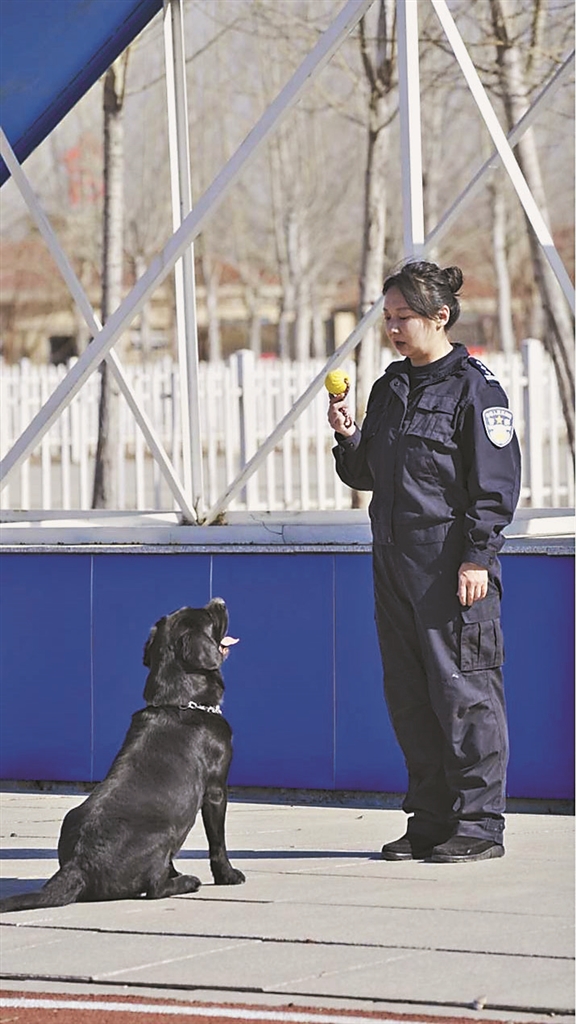 生活报讯 (杜洋 记者栾德谦) 复训在即,黑龙江出入境边防检查总站哈尔滨警犬训练基地里,女训导员王双和战友“肥肥”又开始为全国训导员培训班以及备战亚冬会安保着手准备。