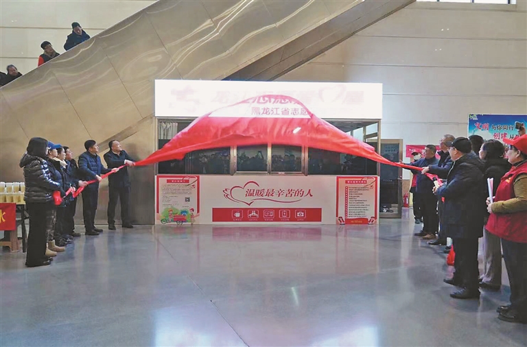 生活报讯 (记者于海霞) 近日,“龙江志愿爱心屋”揭牌仪式暨“温暖旅客心 公益伴我行”学雷锋主题活动在哈尔滨火车站地下二层出站口举行。
