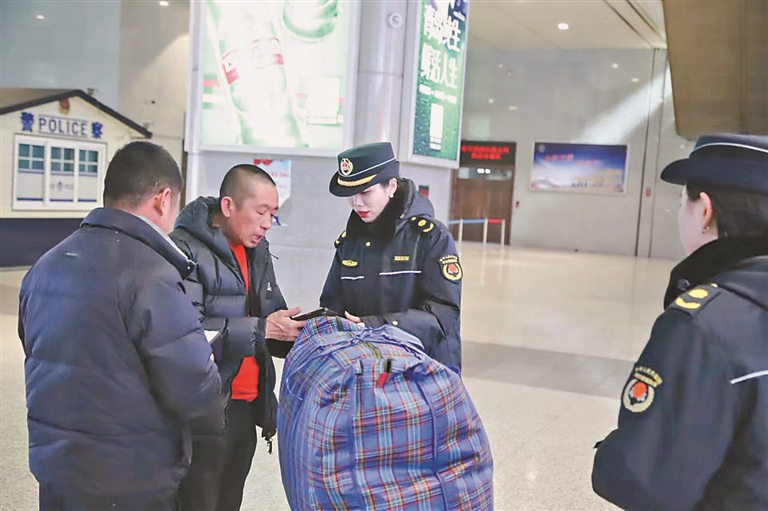 春节前两天,哈西站女子中队队员赵佳、母旭在巡查过程中,发现了一位神情焦急的老人,她们上前询问,原来老人过年来黑龙江走亲戚,家人把她送上车,嘱咐她在哈尔滨站下车,有亲戚在出站口接她。可是,当老人听到列车播报哈尔滨西站到了时,她以为自己到站了,随即下了车,下车后她联系不上家里人,所以着急地哭了。哈西站女子执法中队队员们及时帮老人联系上亲属,家属们从哈站赶往西站将老人接走。