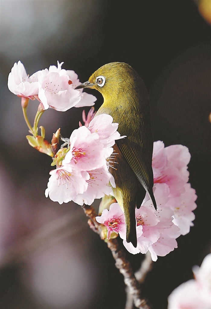 春暖花开,我们到东城滨河公园看鸟,西南角那片茂密的林子里鸟儿最多,鸟鸣也最稠密。菲儿置身于清脆悦耳的鸟鸣中感慨道:“爷爷,大树上有鸟叫声,你听,叽叽喳、叽叽喳,咕咕、咕咕,唧啾啾、唧啾啾,像小雨点儿落下来,淋湿了眼睛,醉了耳朵……”