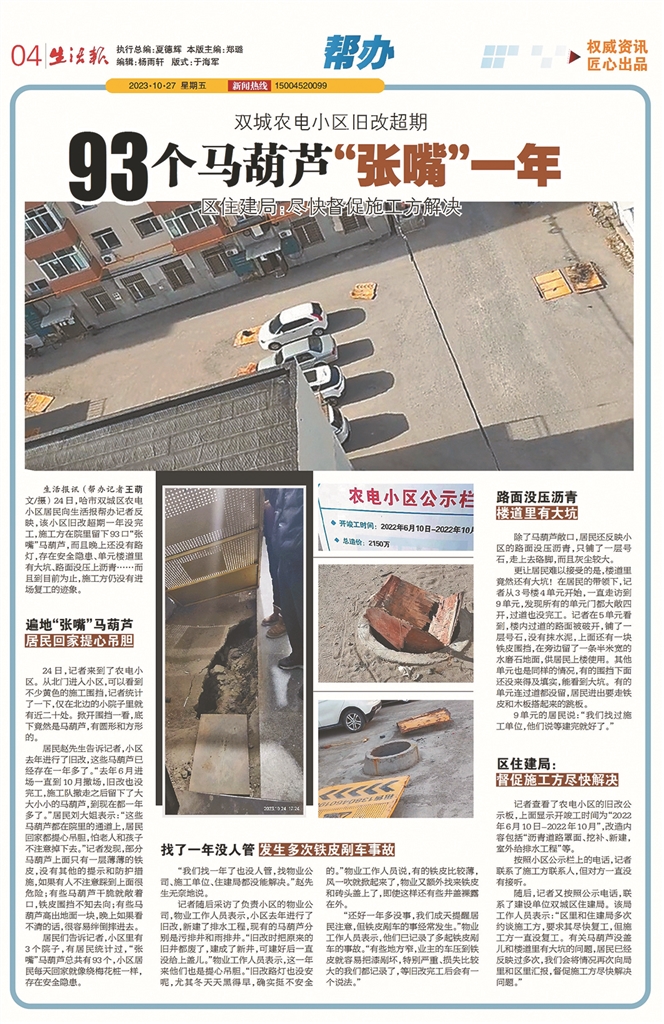 记者此后联系了双城区住建局旧改办,工作人员表示,该旧改工程的确未能如期完工,造成小区存在许多遗留问题。双城区住建局目前正在积极想办法,督促施工方尽快解决,预计于3月末复工,5月末能够解决遗留问题。