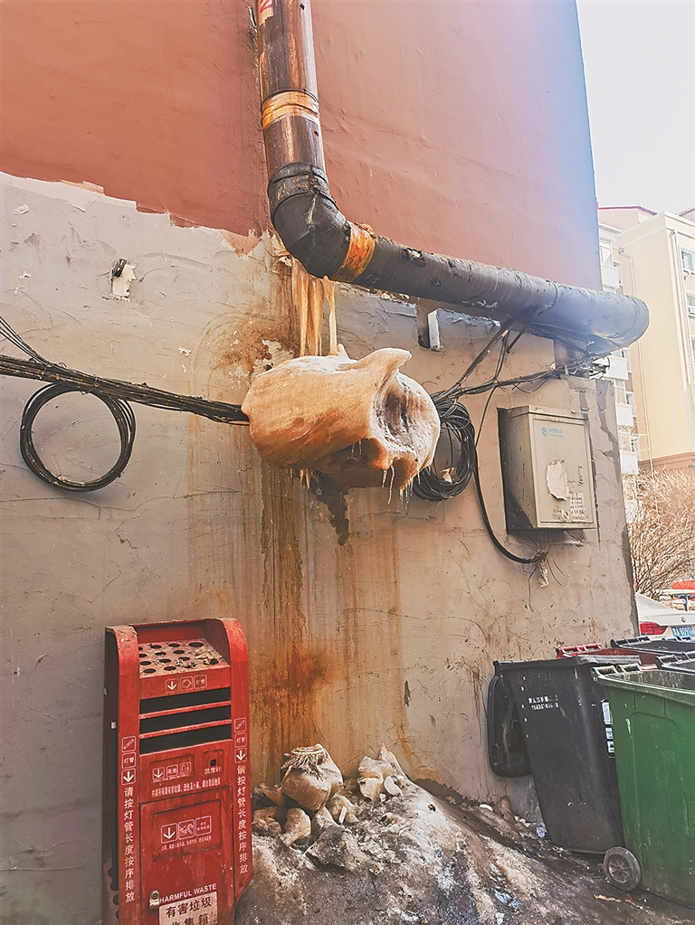 随后,记者来到负责该小区物业管理的黑龙江省恒泰物业,一位负责人告诉记者,他们将协调装修的业主清走此处的建筑垃圾,五街区的冰溜子是一家快餐店烟道排出的热气形成的,物业将协调经营者清理。